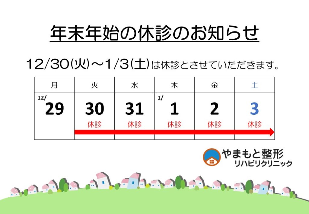 12/30(火)~1/3(土)は休診とさせていただきます。